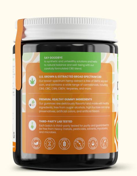 These gummies can help reduce racing thoughts, promote recovery, elevate mood, and ensure sound sleep when needed. Made with our premium Broad Spectrum Hemp Extract, each CBD gummy contains 10mg CBD and is entirely THC-Free (0.0% THC) while naturally containing a variety of cannabinoids (CBG, CBC, CBN, CBDV, CBT, CBL, CBE), terpenes, and flavonoids.