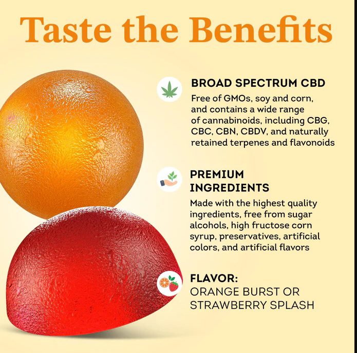 Indulge in our plant-powered wellness with our Broad Spectrum CBD-infused gluten-free, organic, and vegan CBD gummies free from sugar alcohols, high fructose corn syrup, preservatives, artificial flavors, and artificial colors, all while having a delicious flavor.